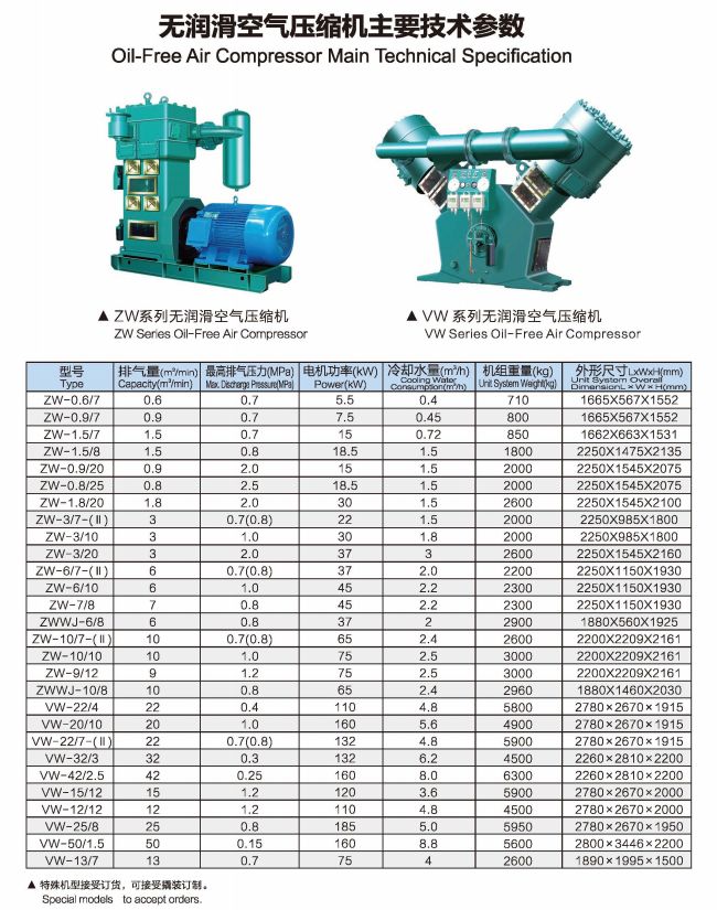 無(wú)潤滑空(kong)氣壓縮(suo)機ZW/VW